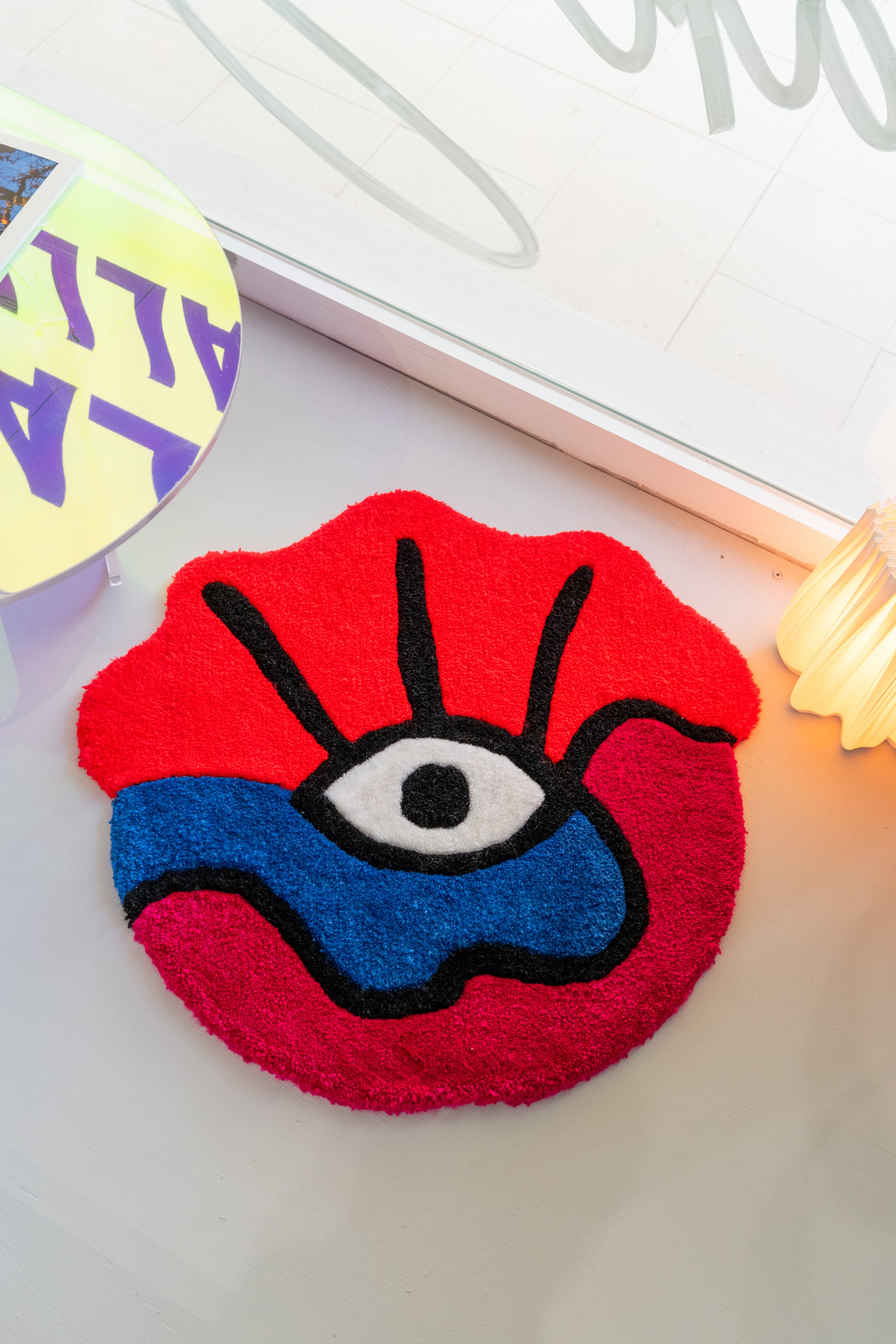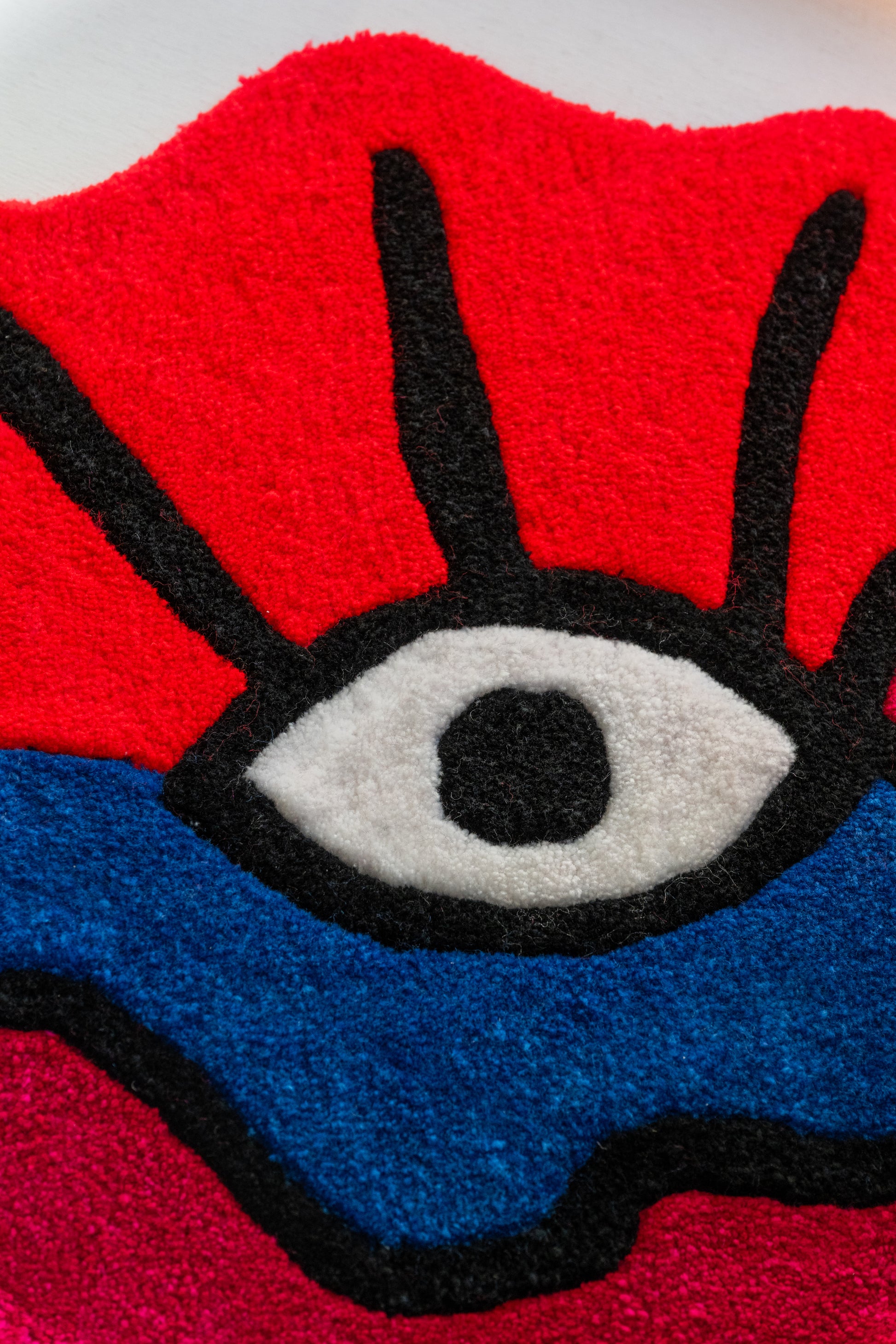 Alfombra o Tapiz hecha a mano utilizando la técnica de tufting, una obra artesanal que combina tradición y diseño contemporáneo. Con un tamaño de 60 cm, cada pieza es única y refleja el arte de tejer a mano con precisión y detalle.
