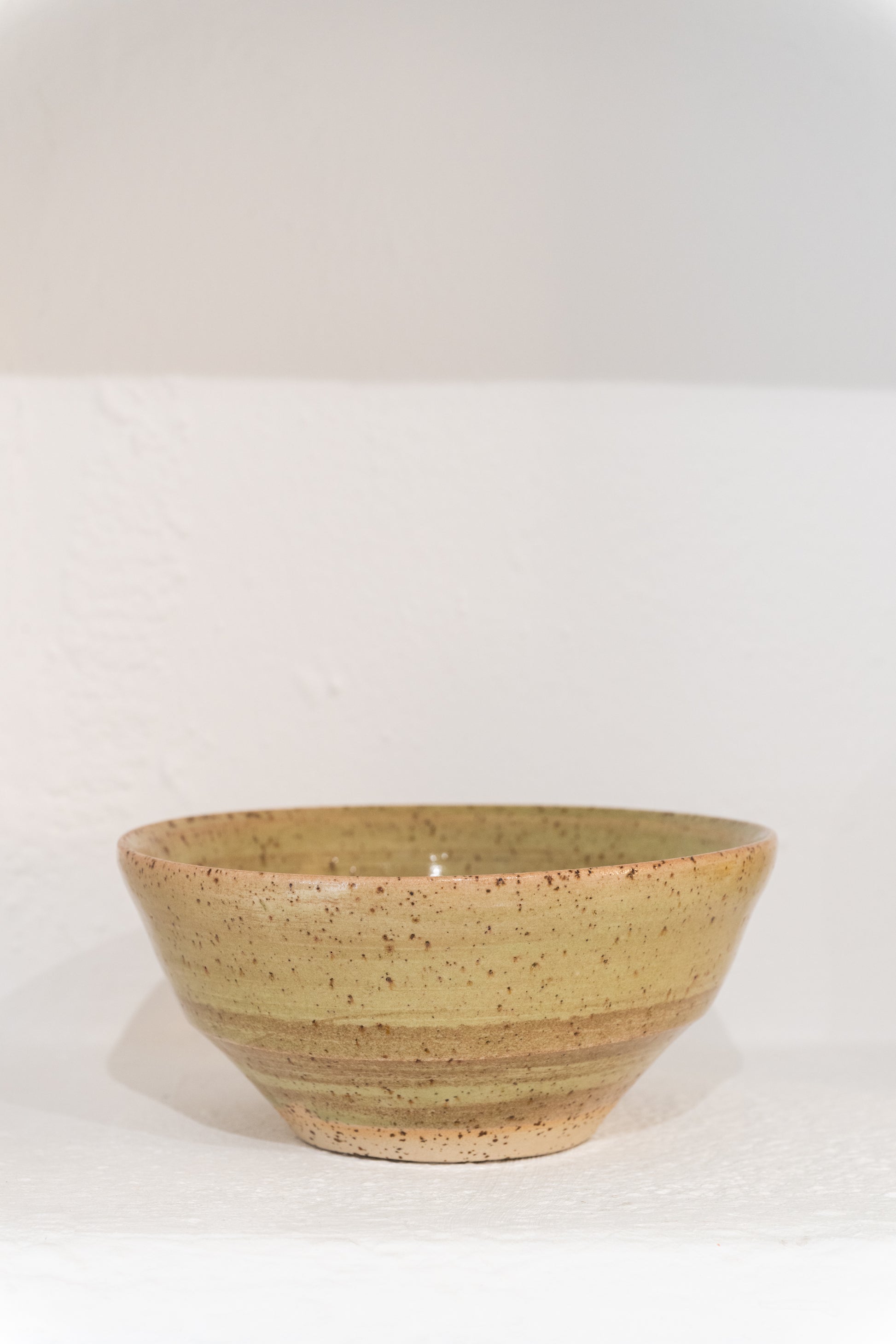 Cuenco de cerámica en tono verde matcha, de 18 cm de diámetro. Pieza funcional de líneas sencillas, que destaca por su equilibrio entre forma y color.