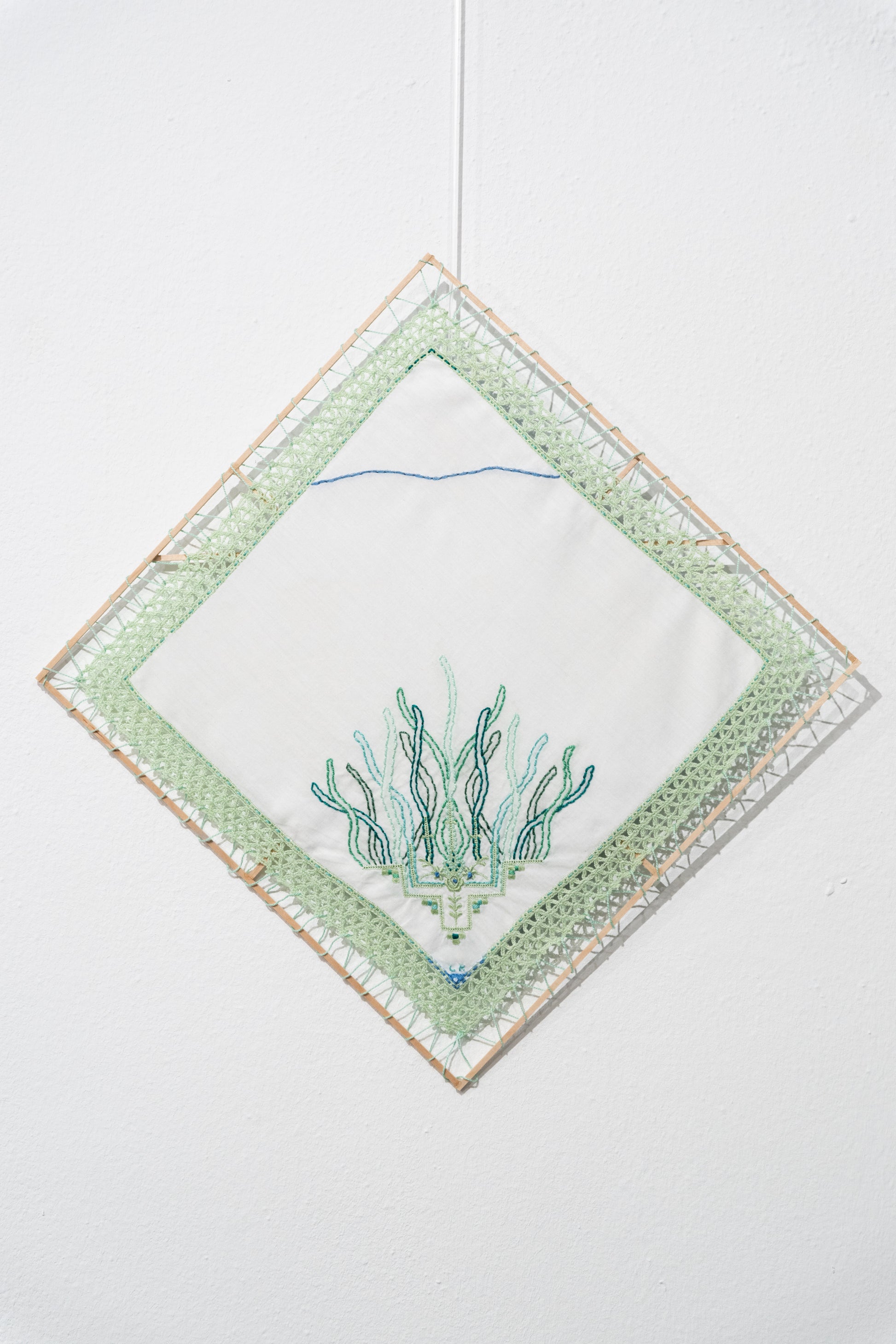 Liz Kueneke collaborating with anonymous stitcher and creator of the handkerchief