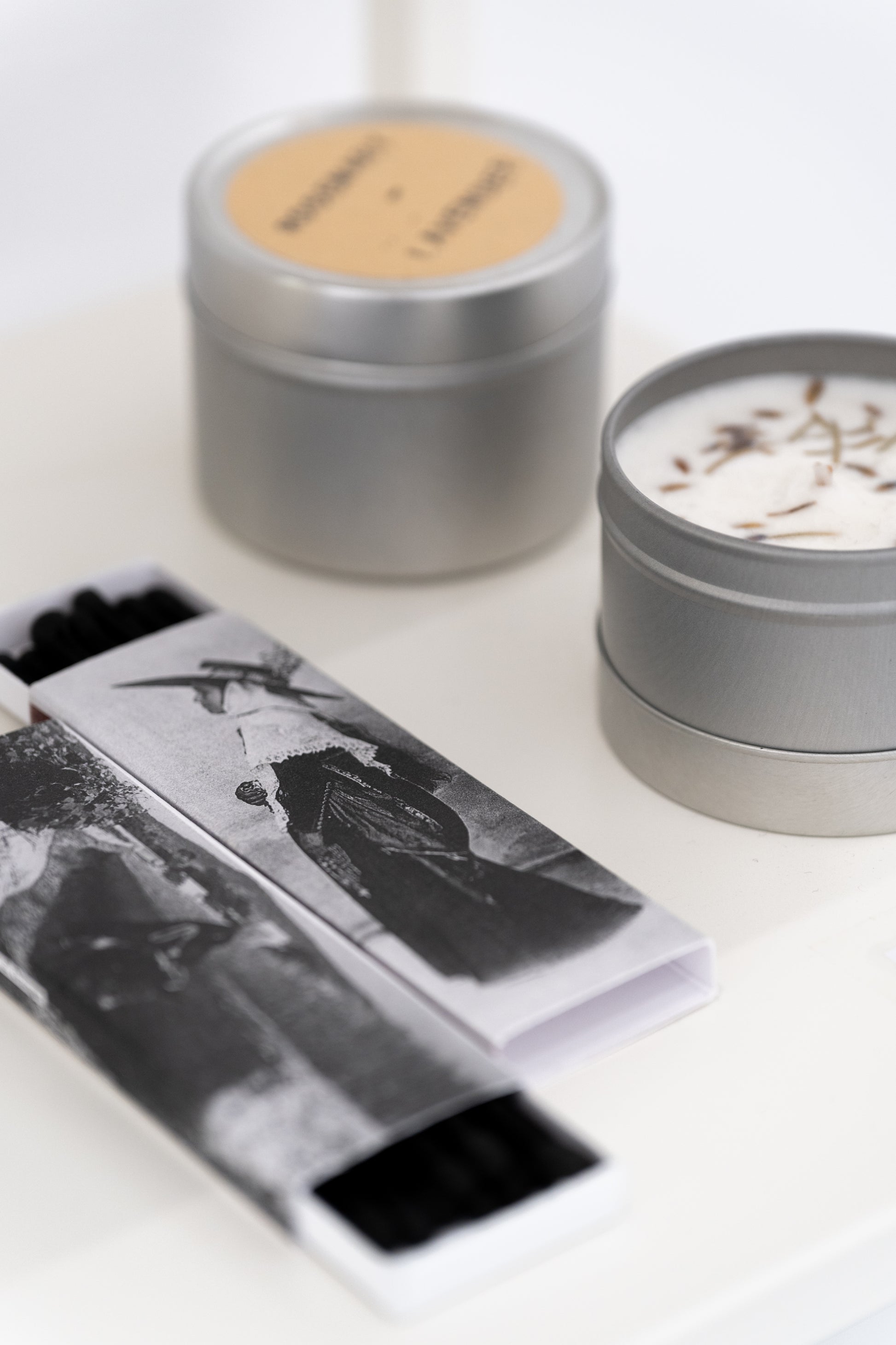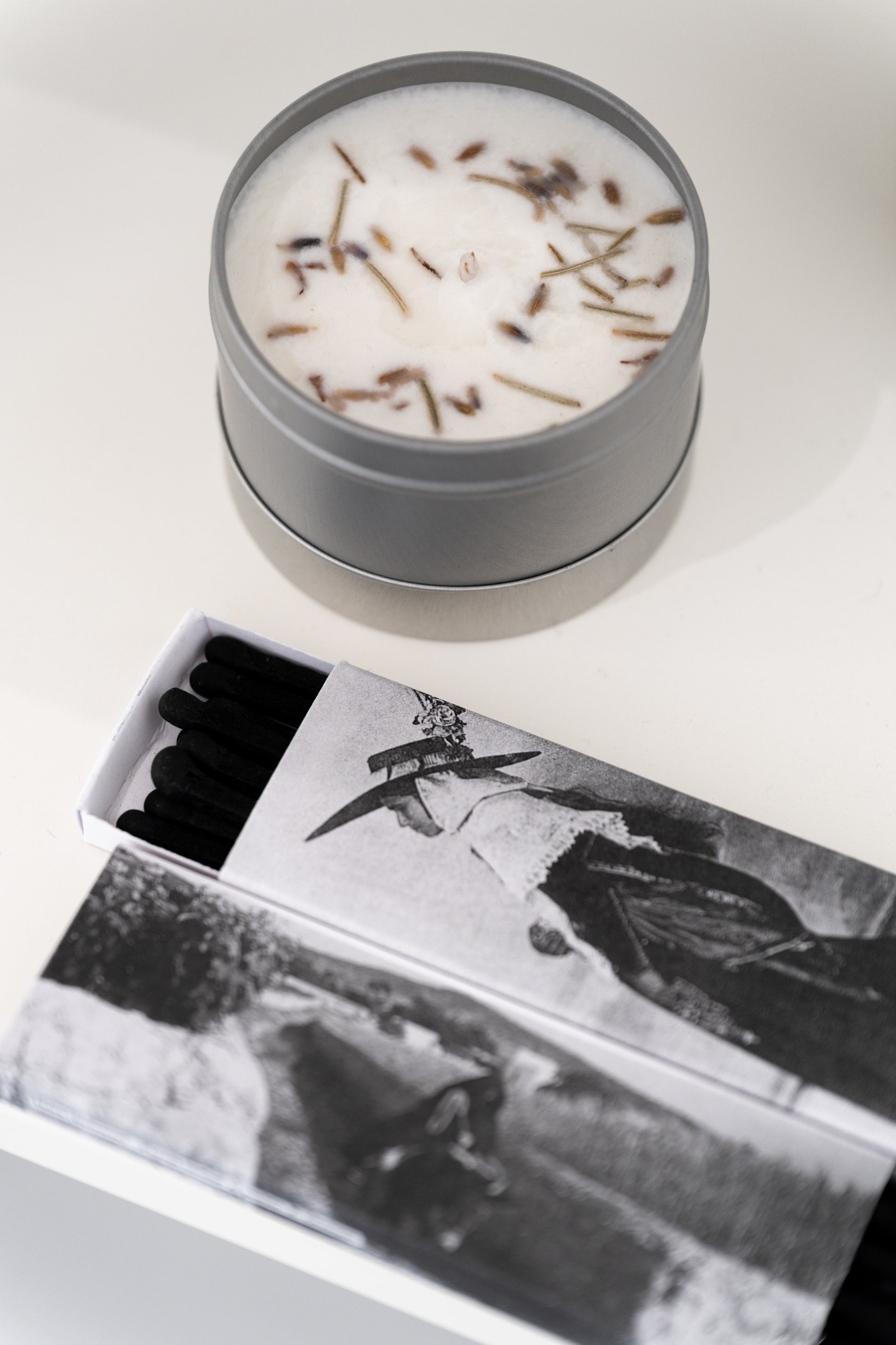 Vela hecha a mano en Ibiza (cera de soya vegana, aceites esenciales), acompañada de 2 fósforos Payesas rituales (Fiesta Payesa, Payesa Trabajadora). Un conjunto que evoca la tradición ibicenca a través de aromas puros y el simbolismo de los rituales locales.