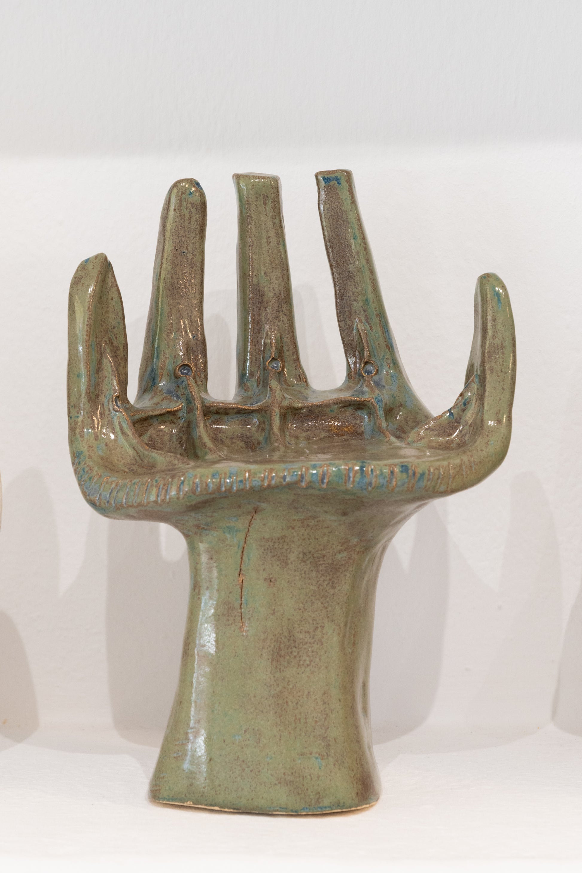 Mano de cerámica, 26x18 cm. Una pieza que captura la esencia de la forma humana a través de la delicadeza y la precisión artesanal, creando un equilibrio entre lo abstracto y lo figurativo, color vierde.