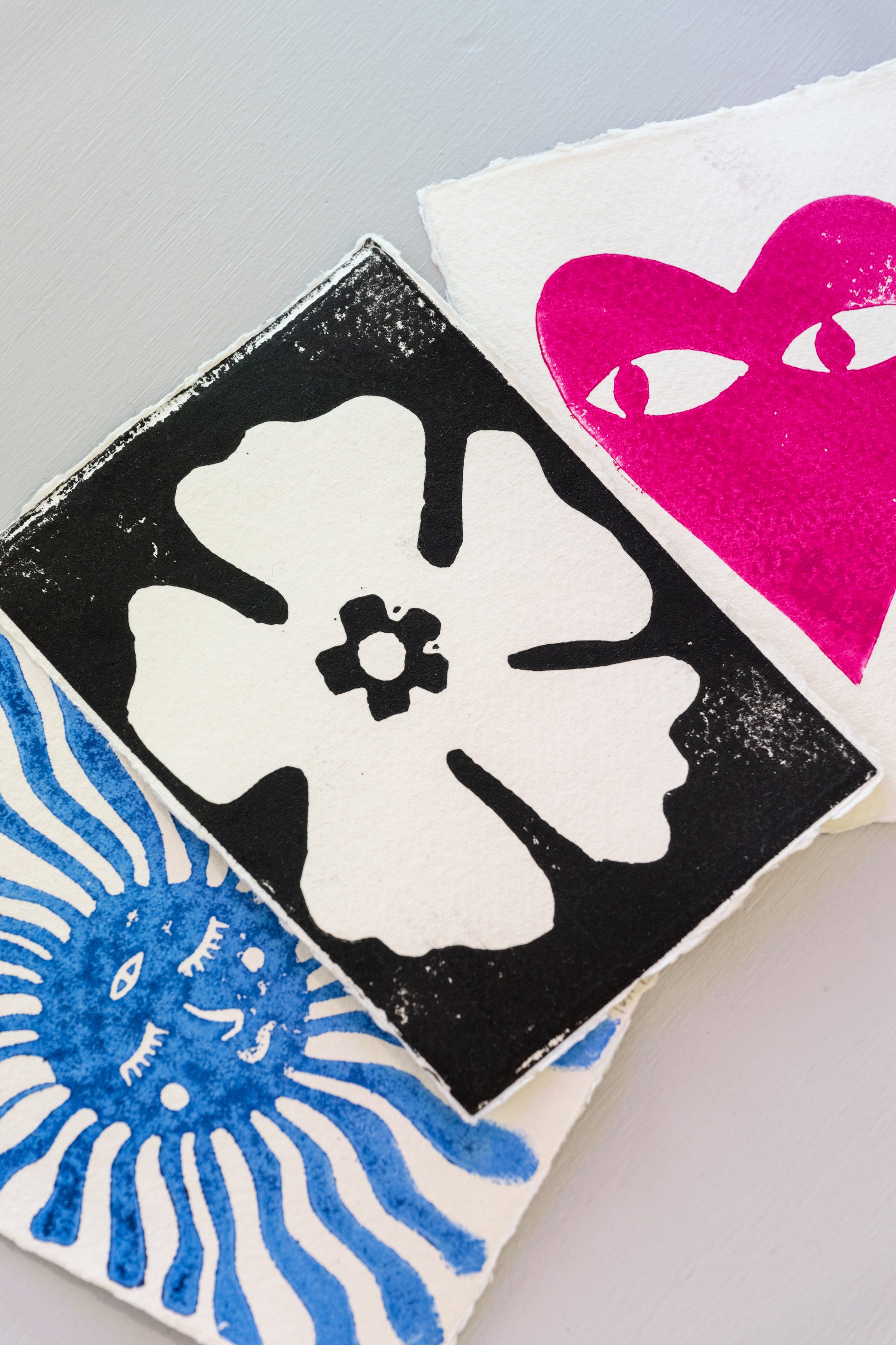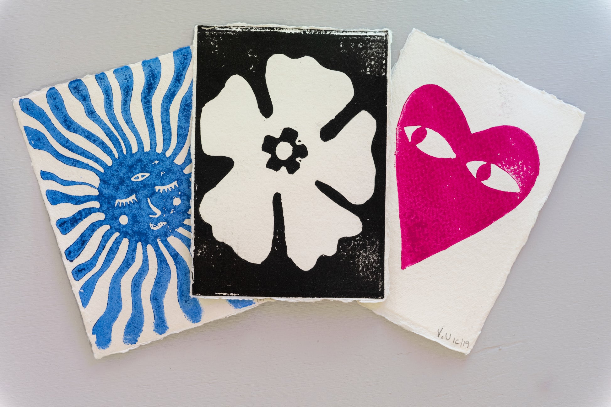 3 Blockprinted Postcards Limited Edition by Valentina Usagi